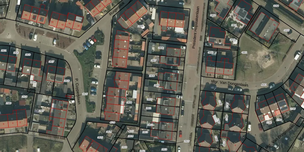 Gebruik de zoekbalk of klik op een perceel om informatie over het perceel te bekijken.