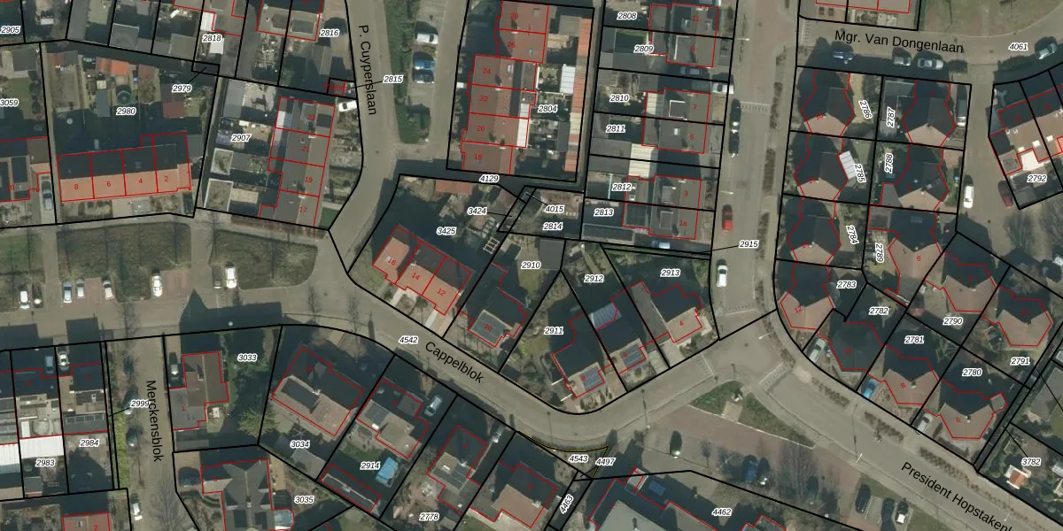 Gebruik de zoekbalk of klik op een perceel om informatie over het perceel te bekijken.