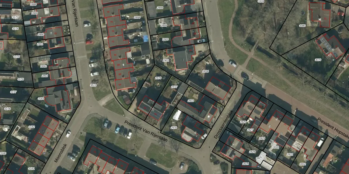 Gebruik de zoekbalk of klik op een perceel om informatie over het perceel te bekijken.