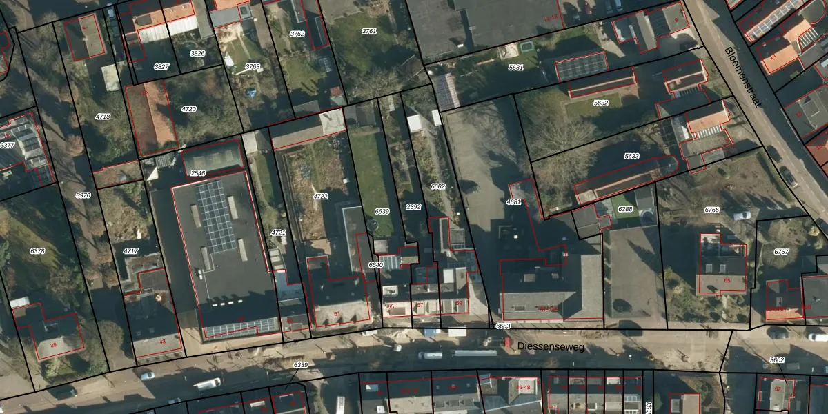 Gebruik de zoekbalk of klik op een perceel om informatie over het perceel te bekijken.