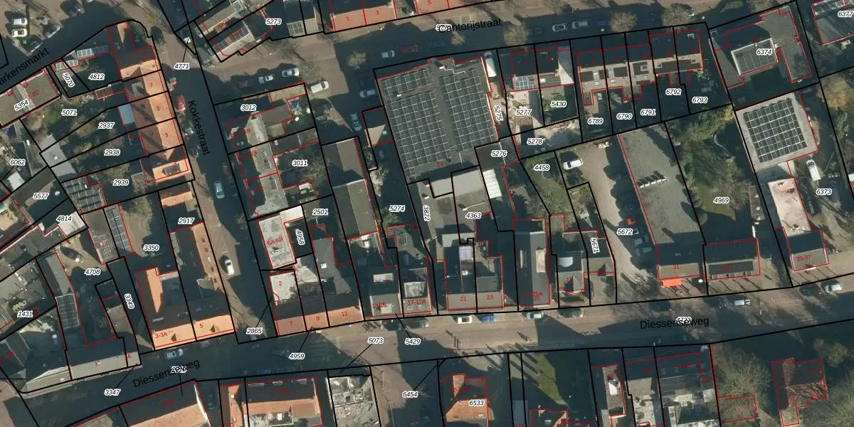 Gebruik de zoekbalk of klik op een perceel om informatie over het perceel te bekijken.