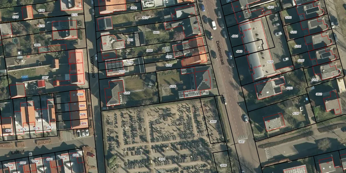 Gebruik de zoekbalk of klik op een perceel om informatie over het perceel te bekijken.