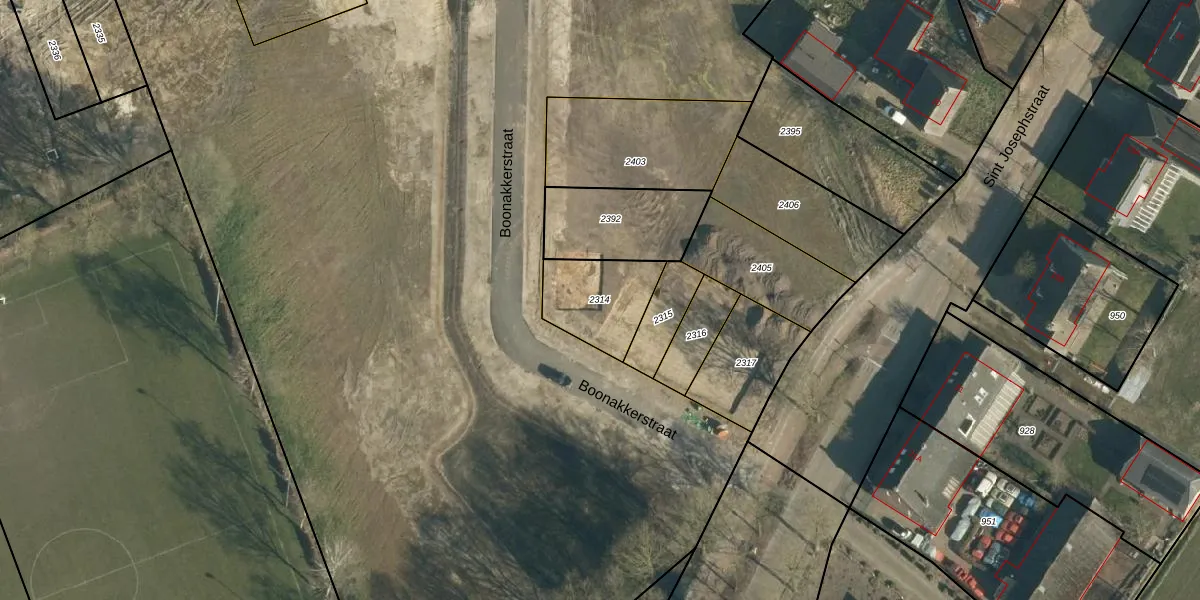 Gebruik de zoekbalk of klik op een perceel om informatie over het perceel te bekijken.