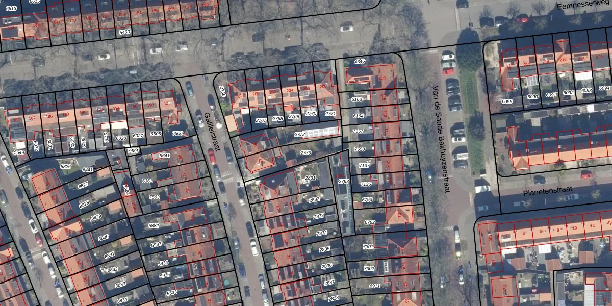 Gebruik de zoekbalk of klik op een perceel om informatie over het perceel te bekijken.