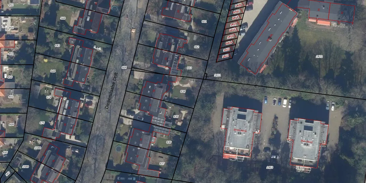 Gebruik de zoekbalk of klik op een perceel om informatie over het perceel te bekijken.