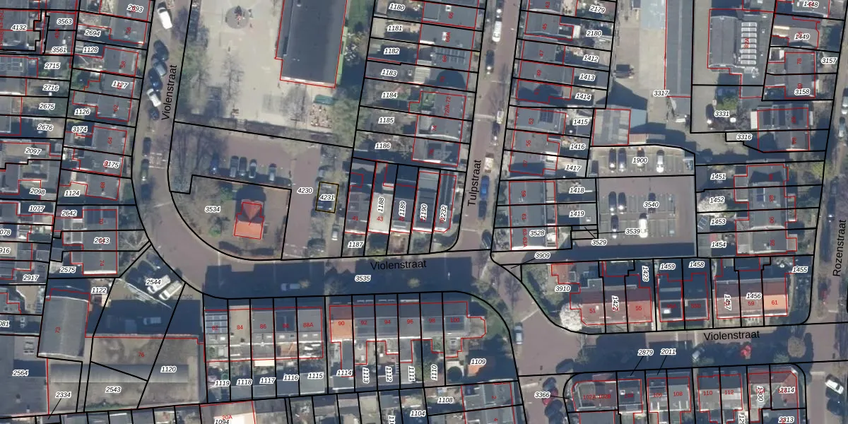 Gebruik de zoekbalk of klik op een perceel om informatie over het perceel te bekijken.