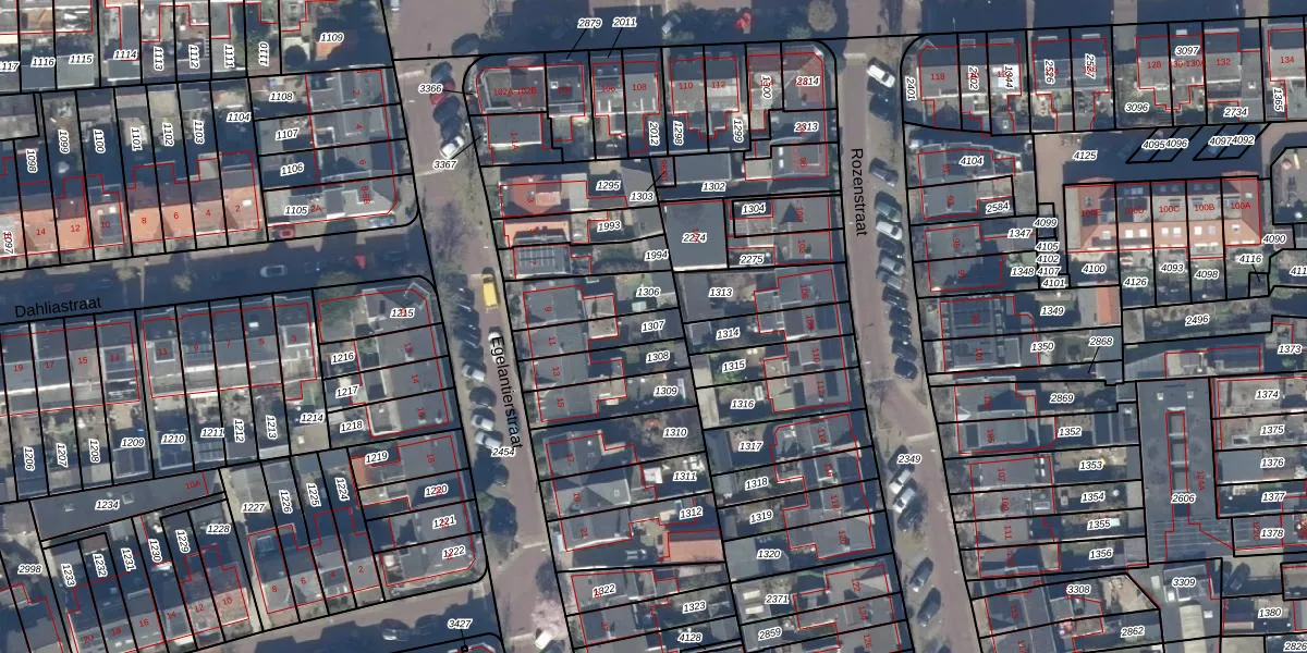 Gebruik de zoekbalk of klik op een perceel om informatie over het perceel te bekijken.