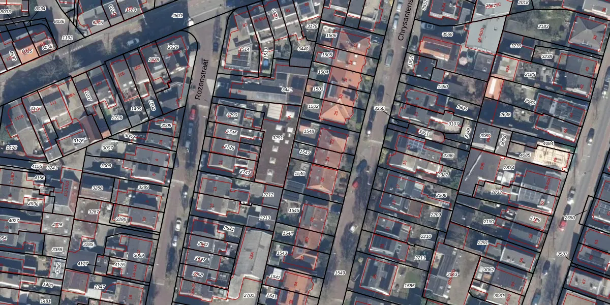 Gebruik de zoekbalk of klik op een perceel om informatie over het perceel te bekijken.