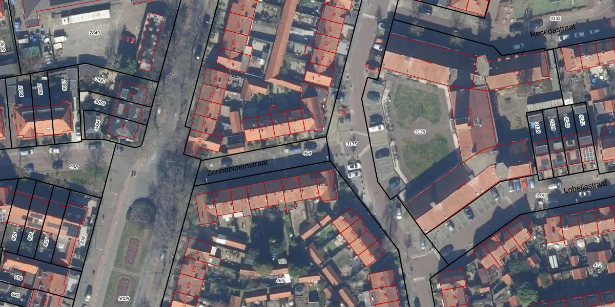 Gebruik de zoekbalk of klik op een perceel om informatie over het perceel te bekijken.