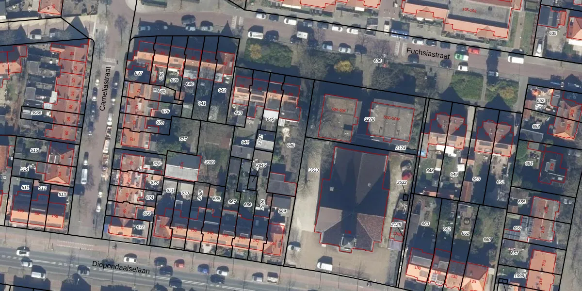 Gebruik de zoekbalk of klik op een perceel om informatie over het perceel te bekijken.