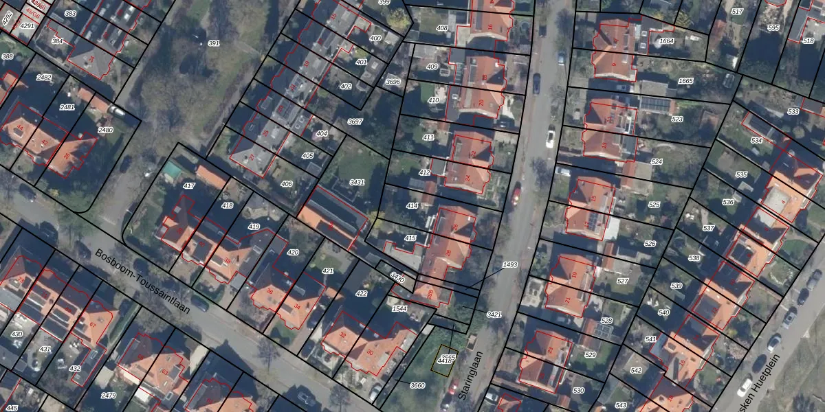 Gebruik de zoekbalk of klik op een perceel om informatie over het perceel te bekijken.