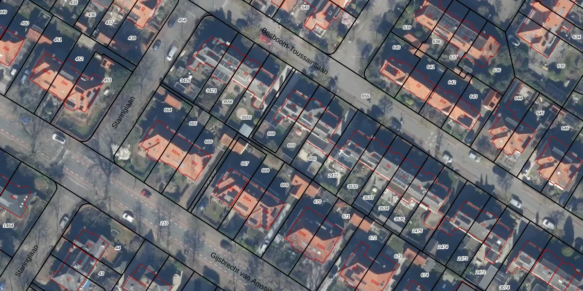 Gebruik de zoekbalk of klik op een perceel om informatie over het perceel te bekijken.