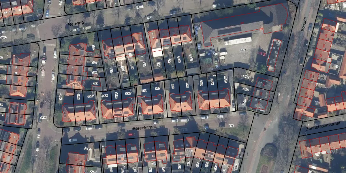 Gebruik de zoekbalk of klik op een perceel om informatie over het perceel te bekijken.