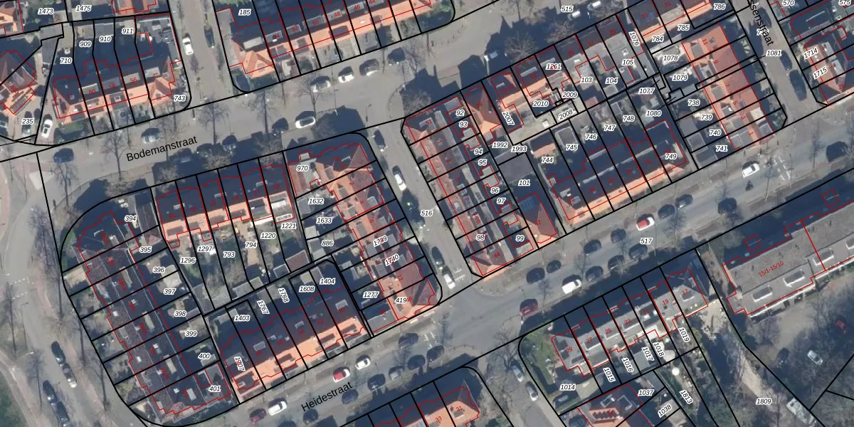 Gebruik de zoekbalk of klik op een perceel om informatie over het perceel te bekijken.