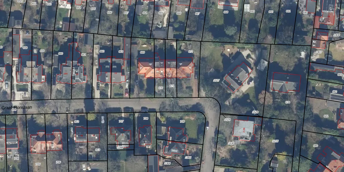 Gebruik de zoekbalk of klik op een perceel om informatie over het perceel te bekijken.