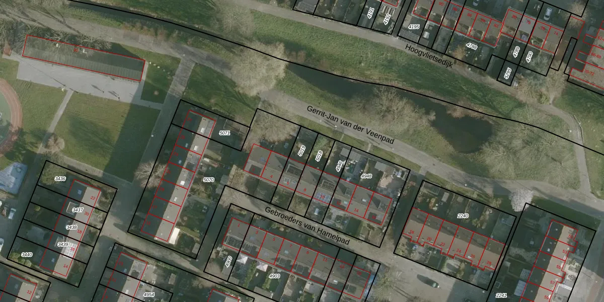 Gebruik de zoekbalk of klik op een perceel om informatie over het perceel te bekijken.
