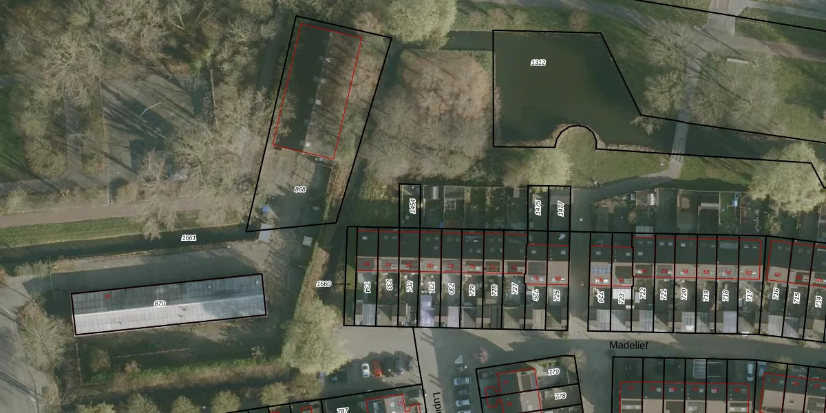 Gebruik de zoekbalk of klik op een perceel om informatie over het perceel te bekijken.