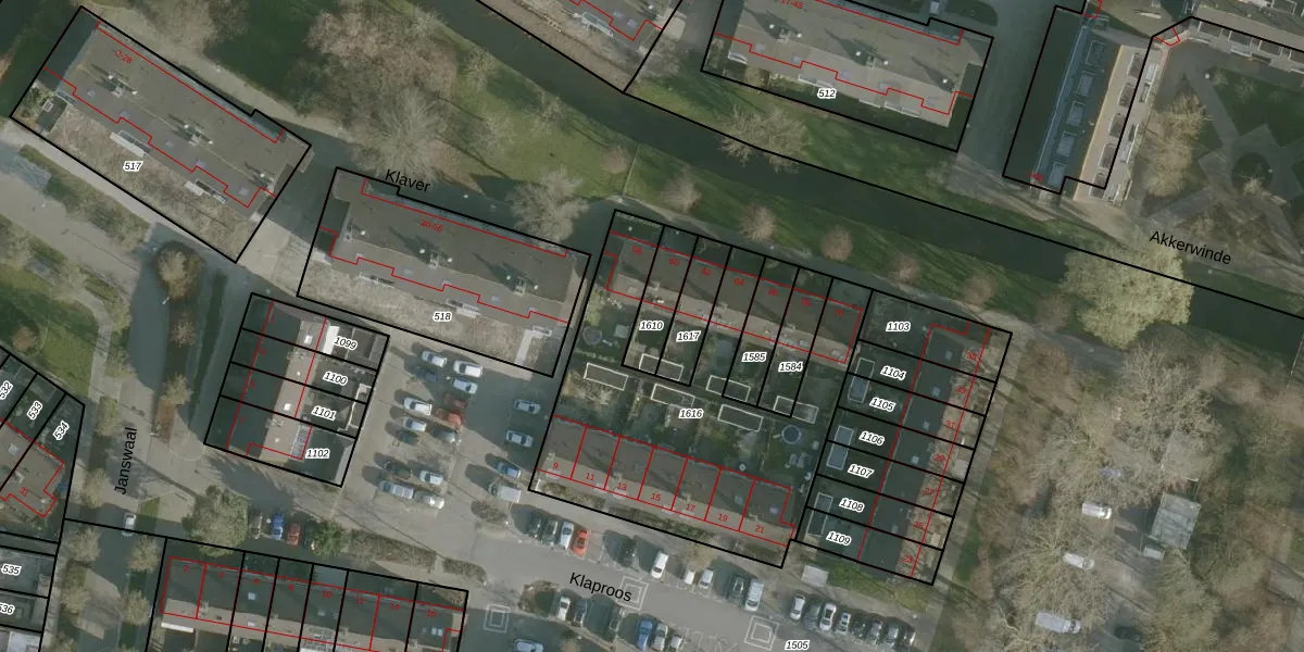 Gebruik de zoekbalk of klik op een perceel om informatie over het perceel te bekijken.