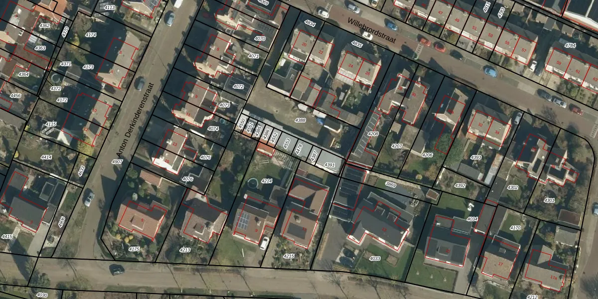 Gebruik de zoekbalk of klik op een perceel om informatie over het perceel te bekijken.
