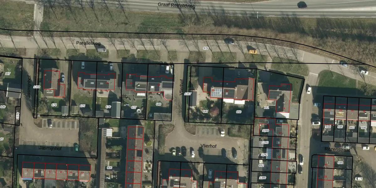 Gebruik de zoekbalk of klik op een perceel om informatie over het perceel te bekijken.