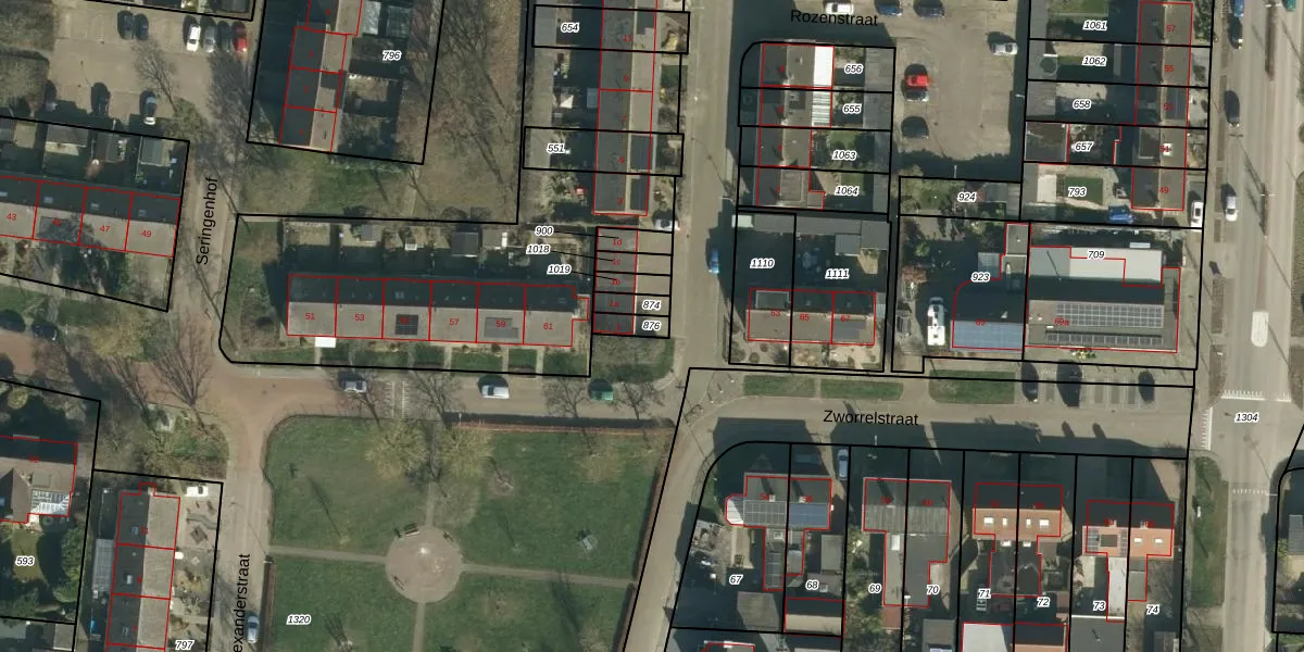 Gebruik de zoekbalk of klik op een perceel om informatie over het perceel te bekijken.