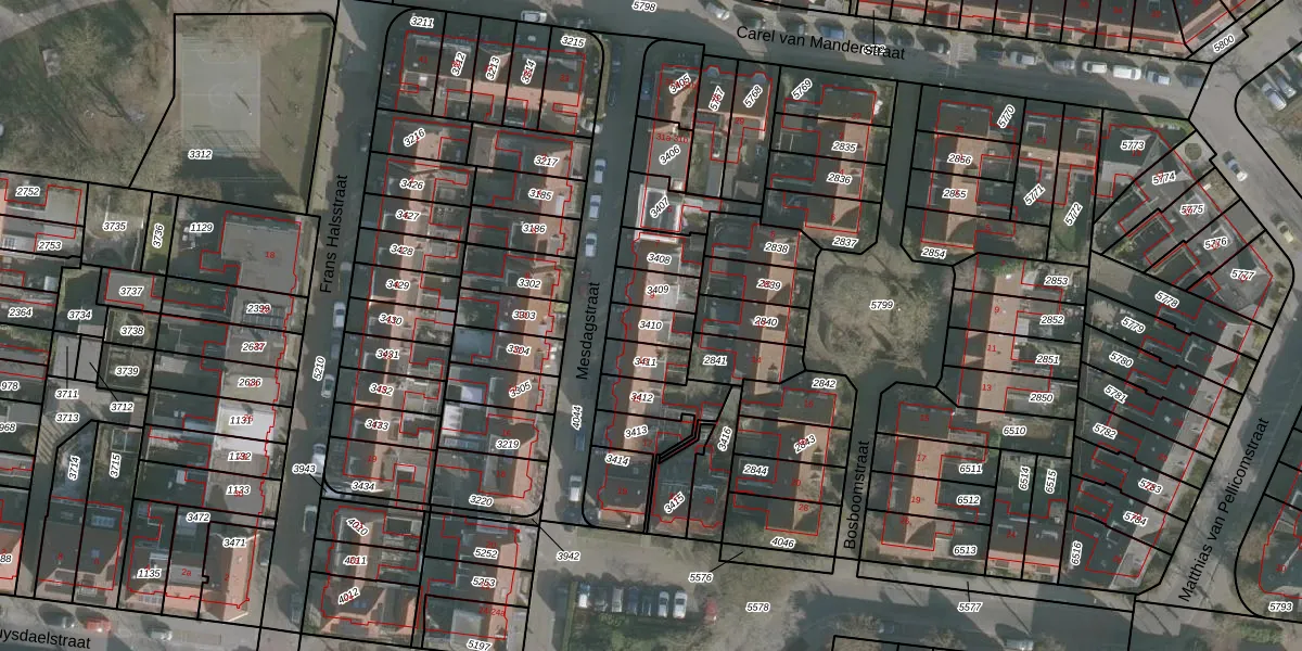 Gebruik de zoekbalk of klik op een perceel om informatie over het perceel te bekijken.