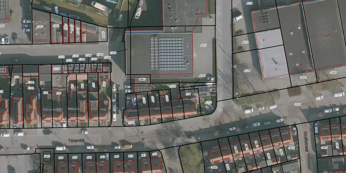 Gebruik de zoekbalk of klik op een perceel om informatie over het perceel te bekijken.