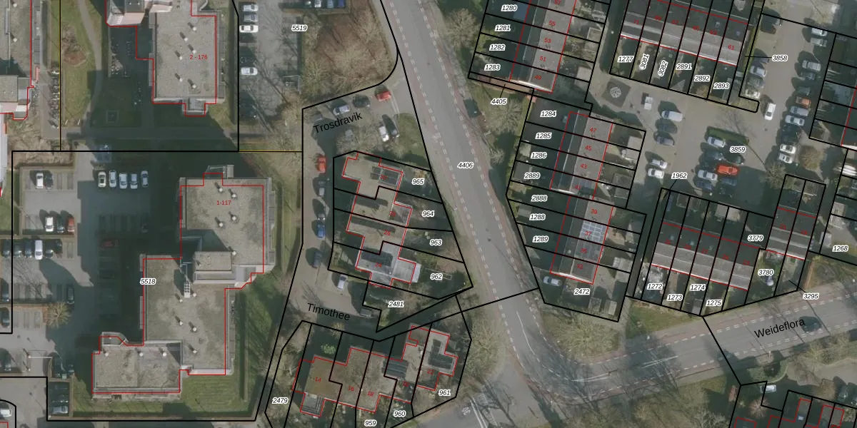 Gebruik de zoekbalk of klik op een perceel om informatie over het perceel te bekijken.