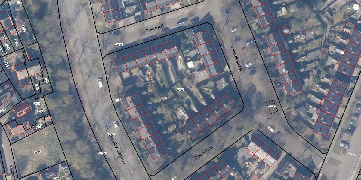 Gebruik de zoekbalk of klik op een perceel om informatie over het perceel te bekijken.
