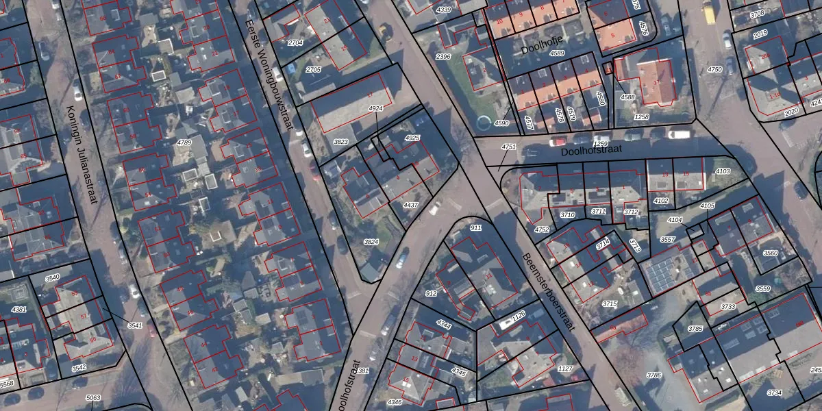 Gebruik de zoekbalk of klik op een perceel om informatie over het perceel te bekijken.