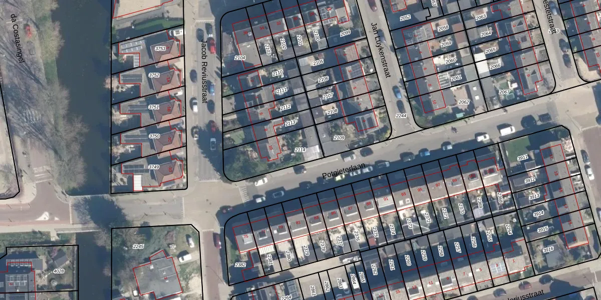 Gebruik de zoekbalk of klik op een perceel om informatie over het perceel te bekijken.