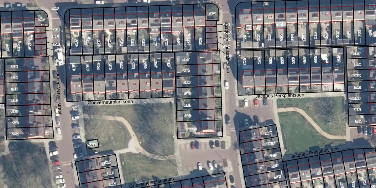 Gebruik de zoekbalk of klik op een perceel om informatie over het perceel te bekijken.