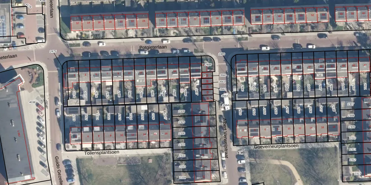 Gebruik de zoekbalk of klik op een perceel om informatie over het perceel te bekijken.