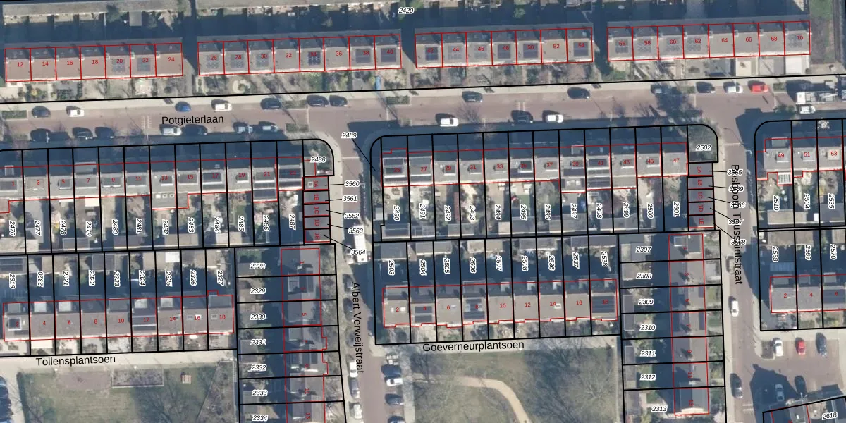 Gebruik de zoekbalk of klik op een perceel om informatie over het perceel te bekijken.