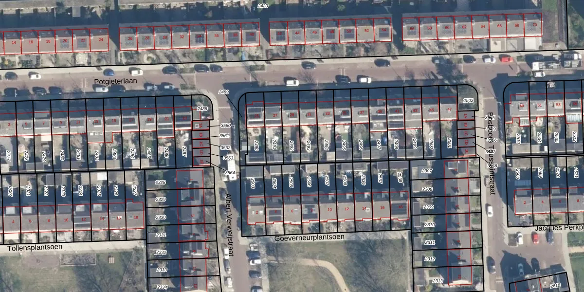 Gebruik de zoekbalk of klik op een perceel om informatie over het perceel te bekijken.