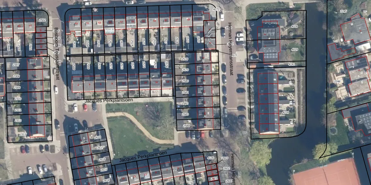 Gebruik de zoekbalk of klik op een perceel om informatie over het perceel te bekijken.