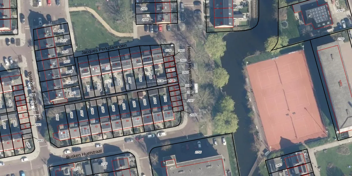 Gebruik de zoekbalk of klik op een perceel om informatie over het perceel te bekijken.