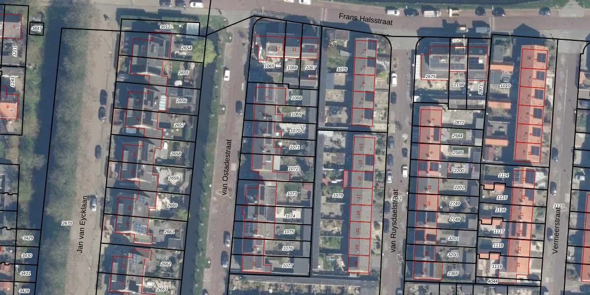 Gebruik de zoekbalk of klik op een perceel om informatie over het perceel te bekijken.