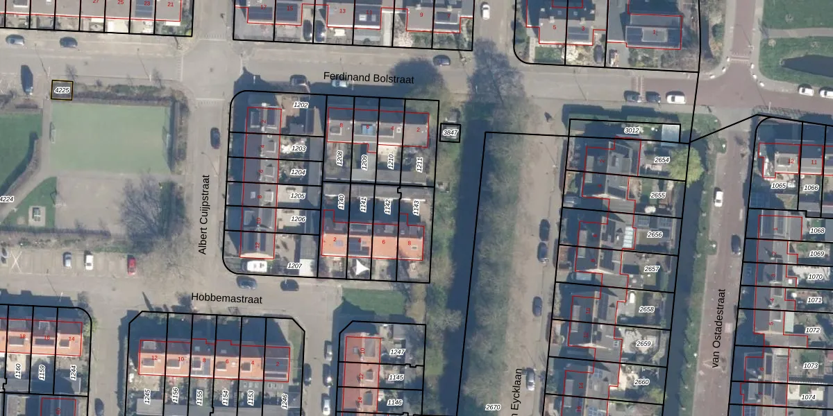 Gebruik de zoekbalk of klik op een perceel om informatie over het perceel te bekijken.