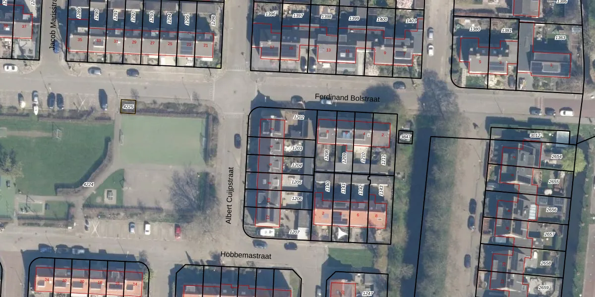 Gebruik de zoekbalk of klik op een perceel om informatie over het perceel te bekijken.