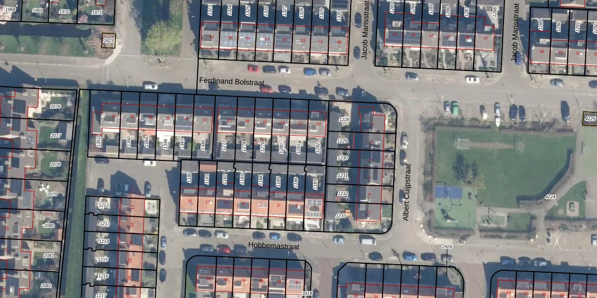 Gebruik de zoekbalk of klik op een perceel om informatie over het perceel te bekijken.