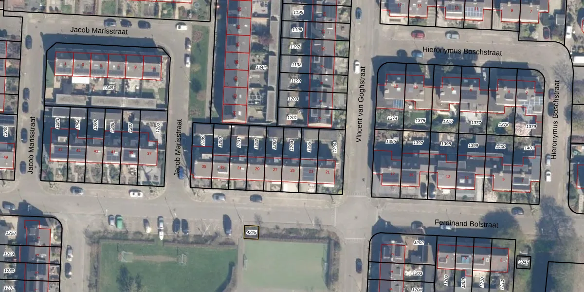 Gebruik de zoekbalk of klik op een perceel om informatie over het perceel te bekijken.