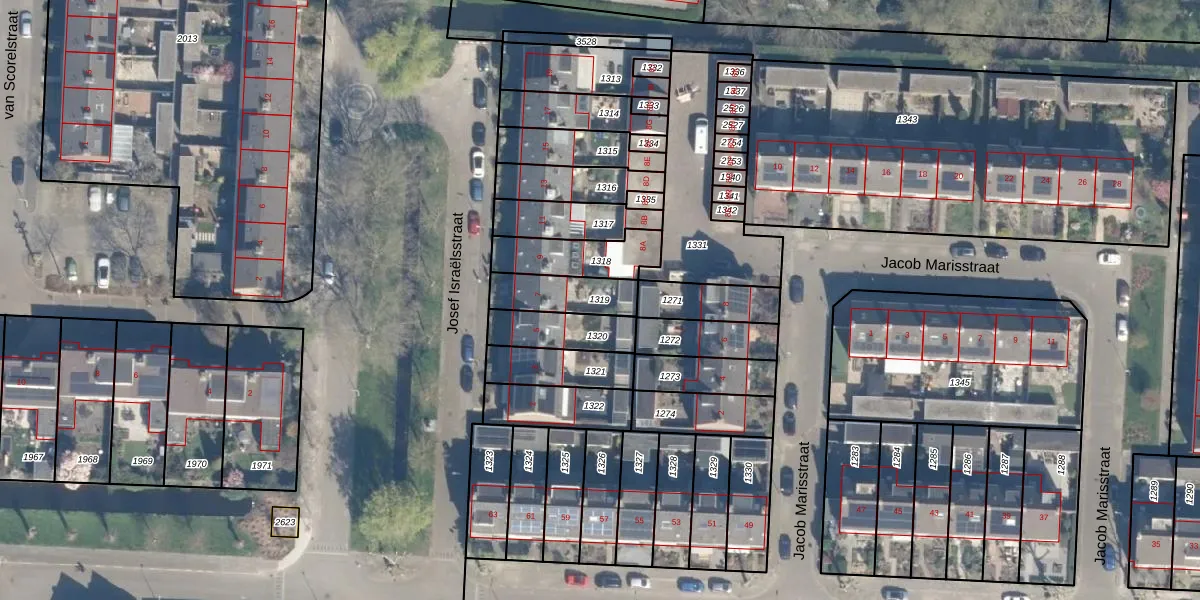 Gebruik de zoekbalk of klik op een perceel om informatie over het perceel te bekijken.