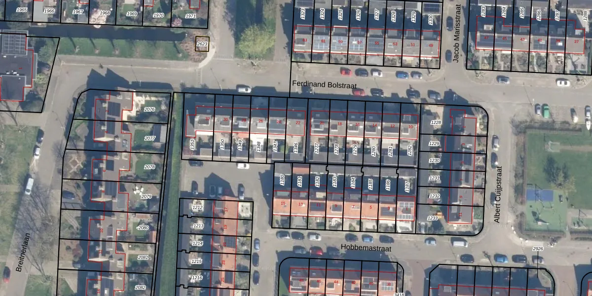 Gebruik de zoekbalk of klik op een perceel om informatie over het perceel te bekijken.