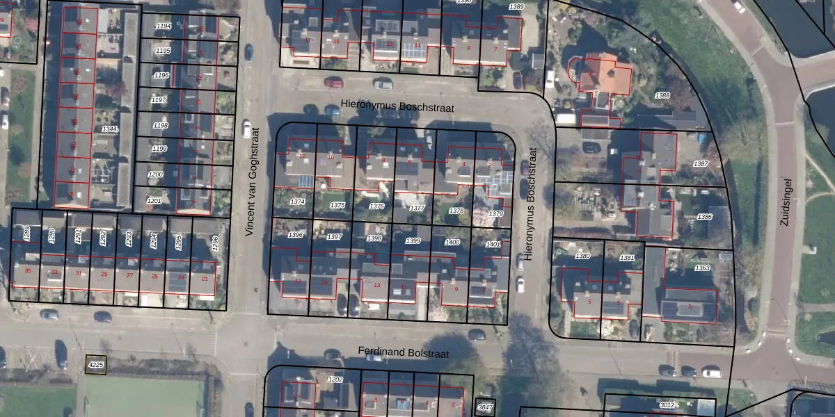 Gebruik de zoekbalk of klik op een perceel om informatie over het perceel te bekijken.