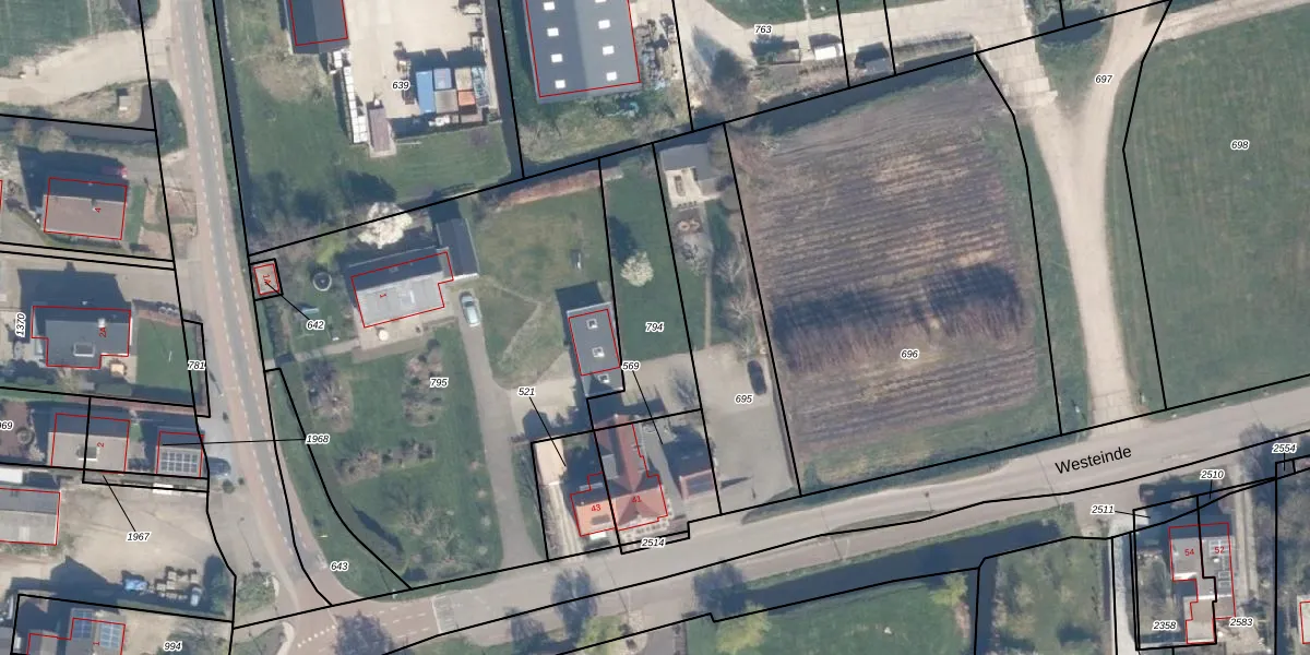 Gebruik de zoekbalk of klik op een perceel om informatie over het perceel te bekijken.