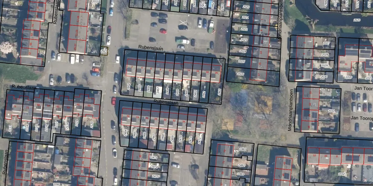 Gebruik de zoekbalk of klik op een perceel om informatie over het perceel te bekijken.