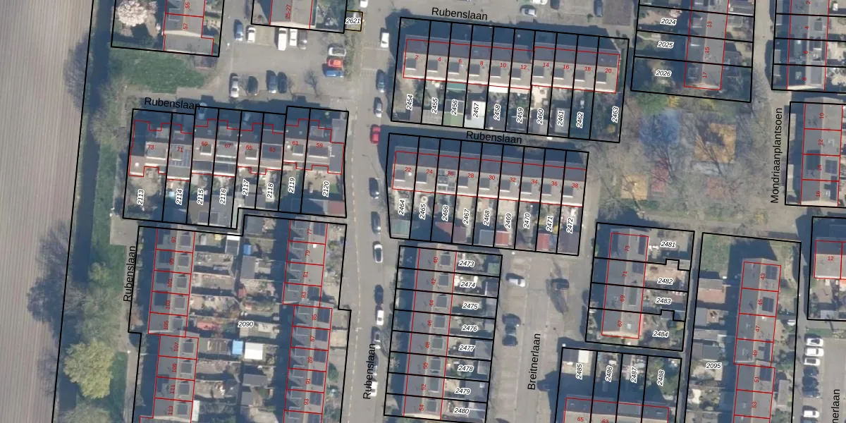 Gebruik de zoekbalk of klik op een perceel om informatie over het perceel te bekijken.