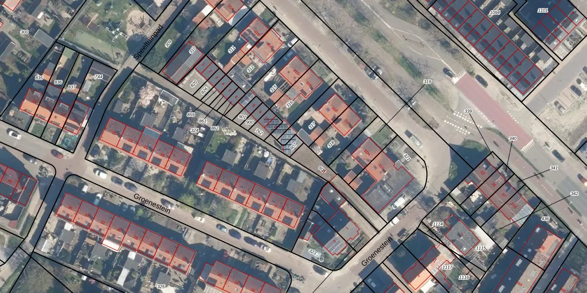 Gebruik de zoekbalk of klik op een perceel om informatie over het perceel te bekijken.