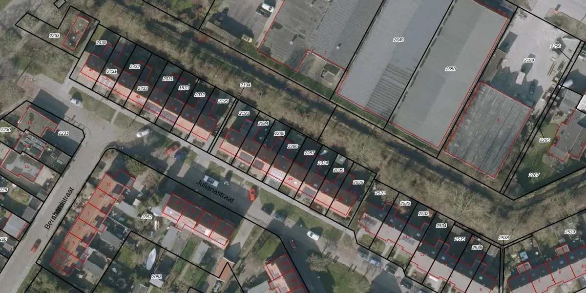 Gebruik de zoekbalk of klik op een perceel om informatie over het perceel te bekijken.